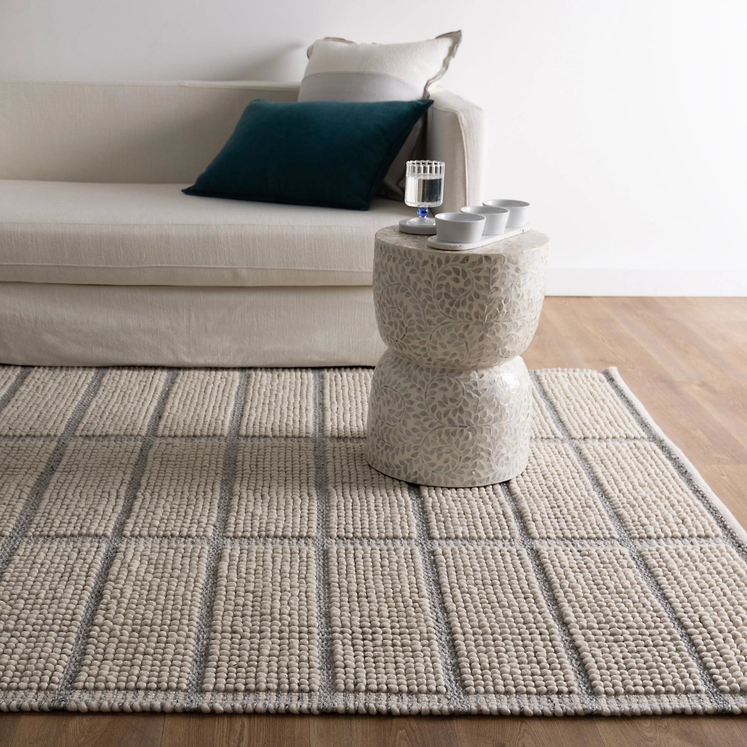 The Albany Wool Rug brings contemporary style and superior craftsmanship to your home. Hand-tufted in India from 100% wool, this luxurious rug features a bold yet minimalist checkered pattern, offering a sophisticated look that blends seamlessly with both modern and classic interiors.